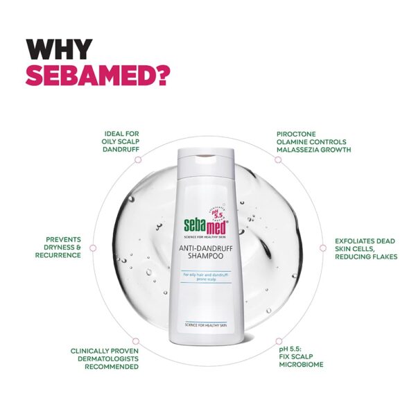 Sebamed Anti-Dandruff Shampoo 200ml – pH 5.5 Gentle Dandruff Control for Oily Scalp. Combat dandruff effectively and gently with Sebamed Anti-Dandruff Shampoo 200ml. Formulated with Piroctone Olamine and a pH 5.5, it helps relieve itching and irritation, reduces dandruff flakes, and supports a healthy scalp. Ideal for oily scalp conditions, leaving hair clean, fresh, and flake-free.