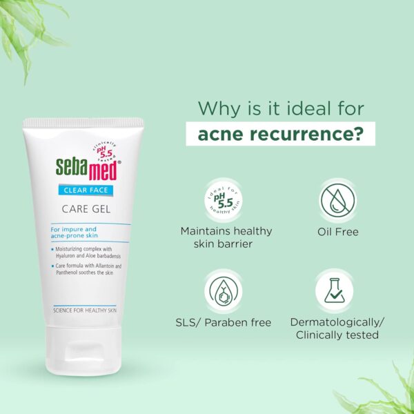Sebamed Clear Face Care Gel 50ml – Lightweight pH 5.5 Moisturizer for Acne-Prone Skin. Hydrate your skin without clogging pores with Sebamed Clear Face Care Gel 50ml. This oil-free, non-greasy gel provides essential moisture while supporting the skin’s pH 5.5. It helps calm irritation, combat pimples, and improve skin texture, making it perfect for oily and acne-prone skin, leaving it smooth and clear.